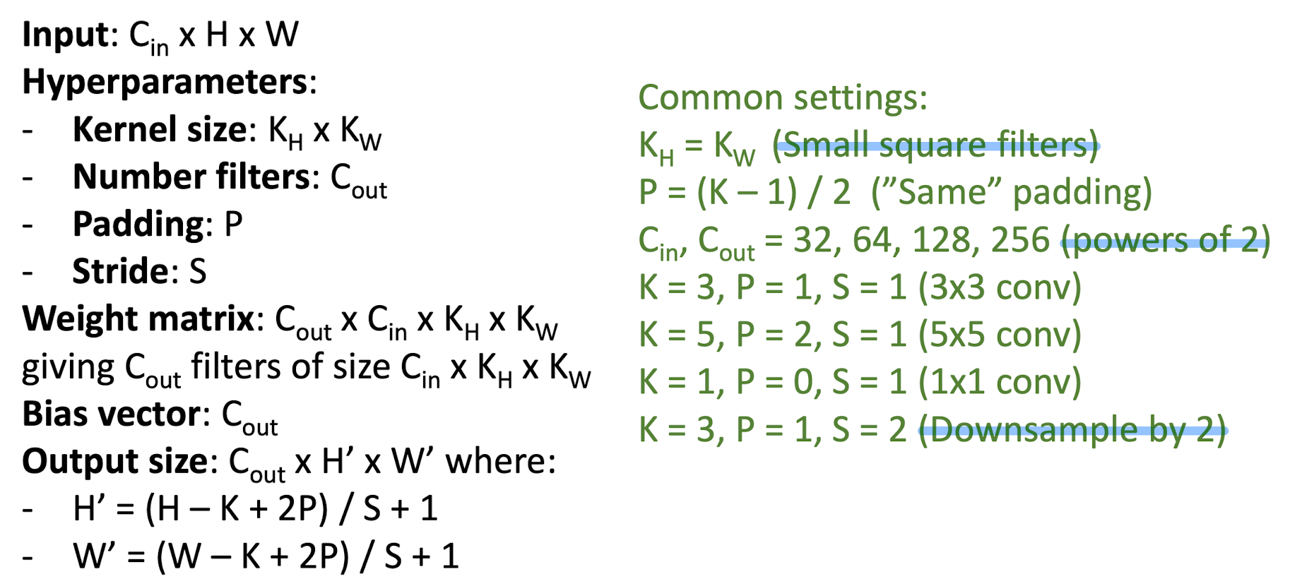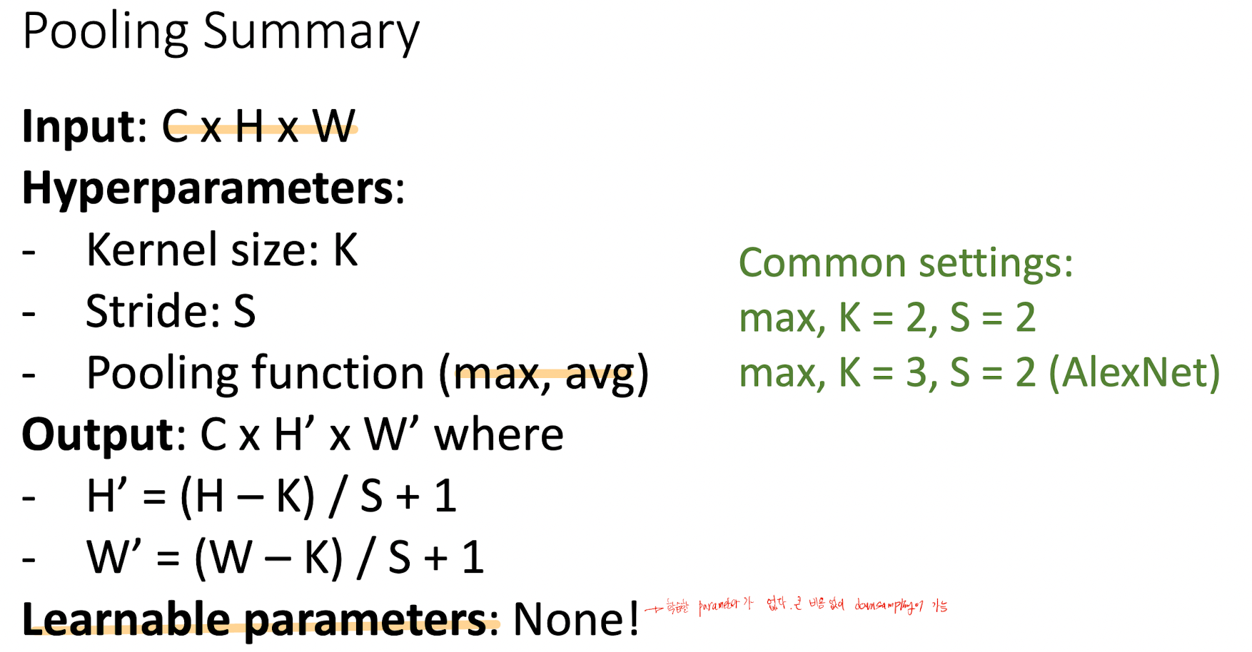 - (H-K + 2P) / s + 1의 무적 공식을 기억해 놓자!