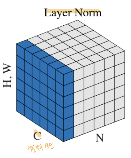 그렇다면 CNN의 구조에서는 이러한 채널이 들어 있기 때문에, 아래와 같이 normalize를 계산할 수 있다.