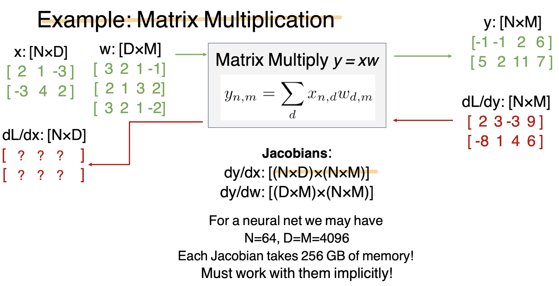 즉 dL/dx를 구하기 위해서 [(N*D) * (N*M)]의 메모리 공간이 필요하게 된다. 위에서 써있는것처럼의 예시라면 256기가나 필요하다고 한다. 정말 엄청난 양 이다.