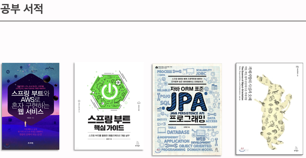 난 스프링 부트에 대한 지식이 적었기 때문에, 김영한강사님의 강의도 보고 책들도 여러개 읽으면서 공부할 수 있었다. 아침 9시부터 저녁 6시까지 의무적으로 있어야 하기 때문에 시간은 충분했고 나름 의무감이 생기기 때문에 난 좋았다. 특히 스프링 부트 핵심가이드라는 책을 보면서 기본 개념을 잡을 수 있었다. JPA를 사용해야 했기에 JPA도 공부했어야 했고 두꺼운 책에서 필요한 부분만 골라 읽었었다.