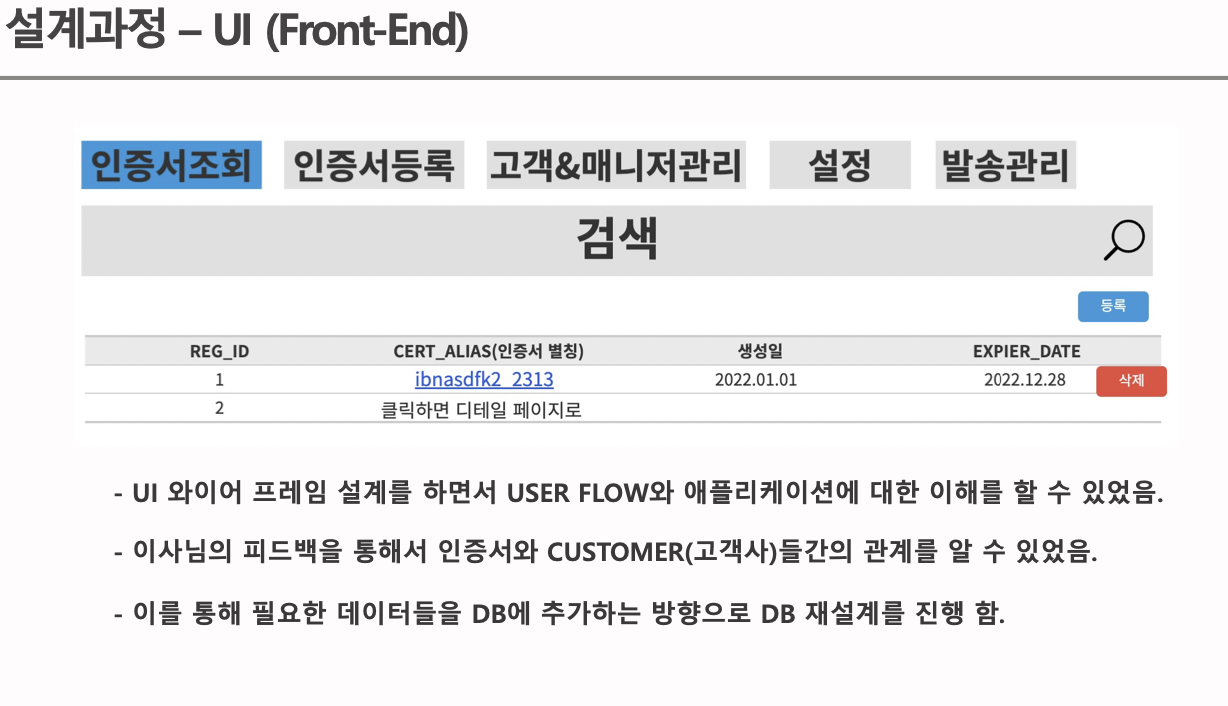 - 인증서 CRUD( 파일은 디스크, 정보는 DB )