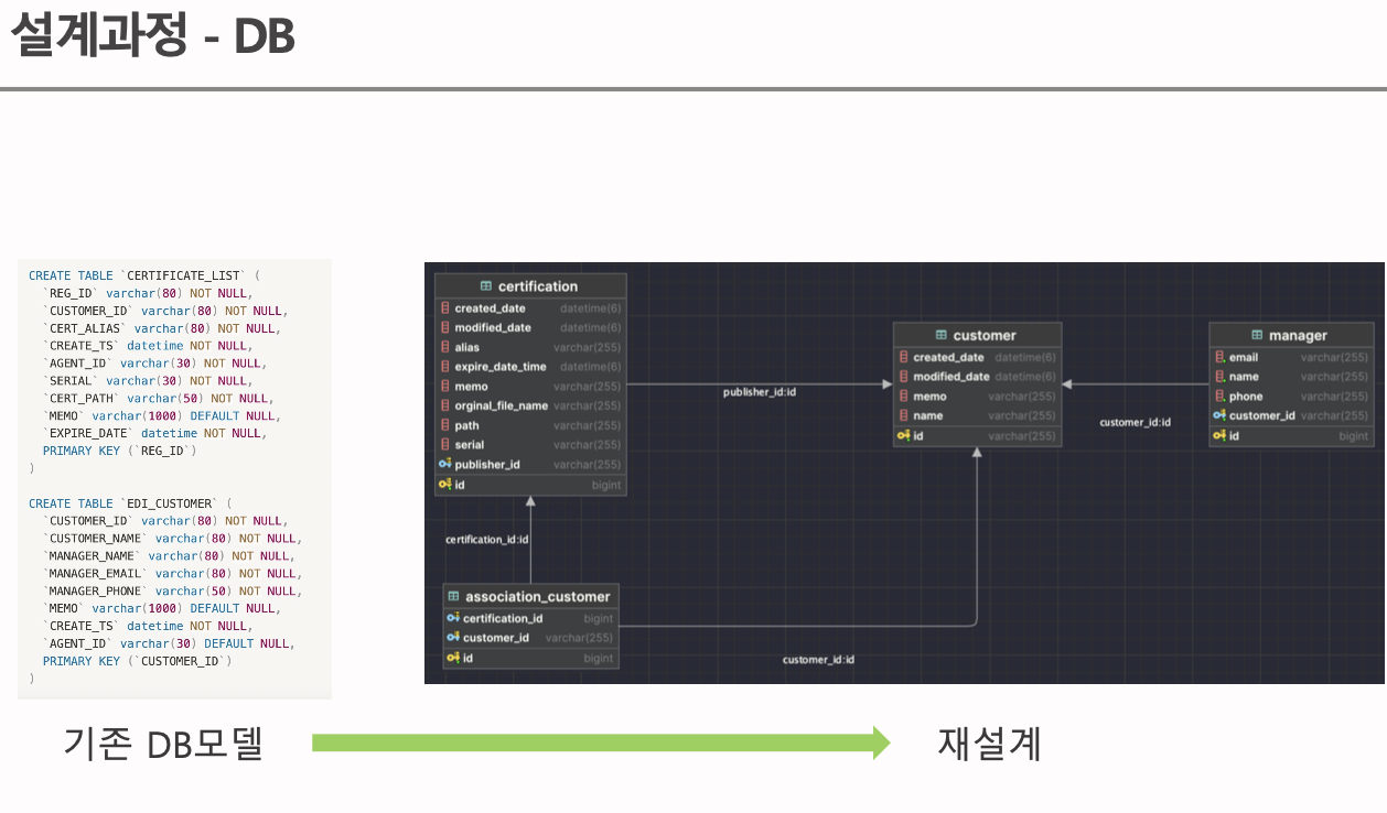 이후 주어졌던 예시 DB를 수정하여 재설계하는 시간을 가졌다. 이부분에서 데이터베이스 설계가 정말 어렵구나라고 느꼈었고, 내가 이번 프로젝트에서 사용됐던 Spring-data-jpa에서 생기는 객체와 DB와의 패러다임 불일치를 이해하는데 꽤 많은 고민을 할 수 있었다.