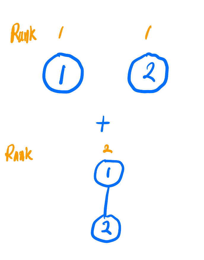 - 만일 Rank가 같다면 rank의 크기를 1올려줘야 한다. 이 원리는 간단하다. 밑으로 들어가기 때문이다.