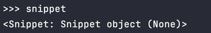snippet = Snippet(code='foo = "bar"\n')