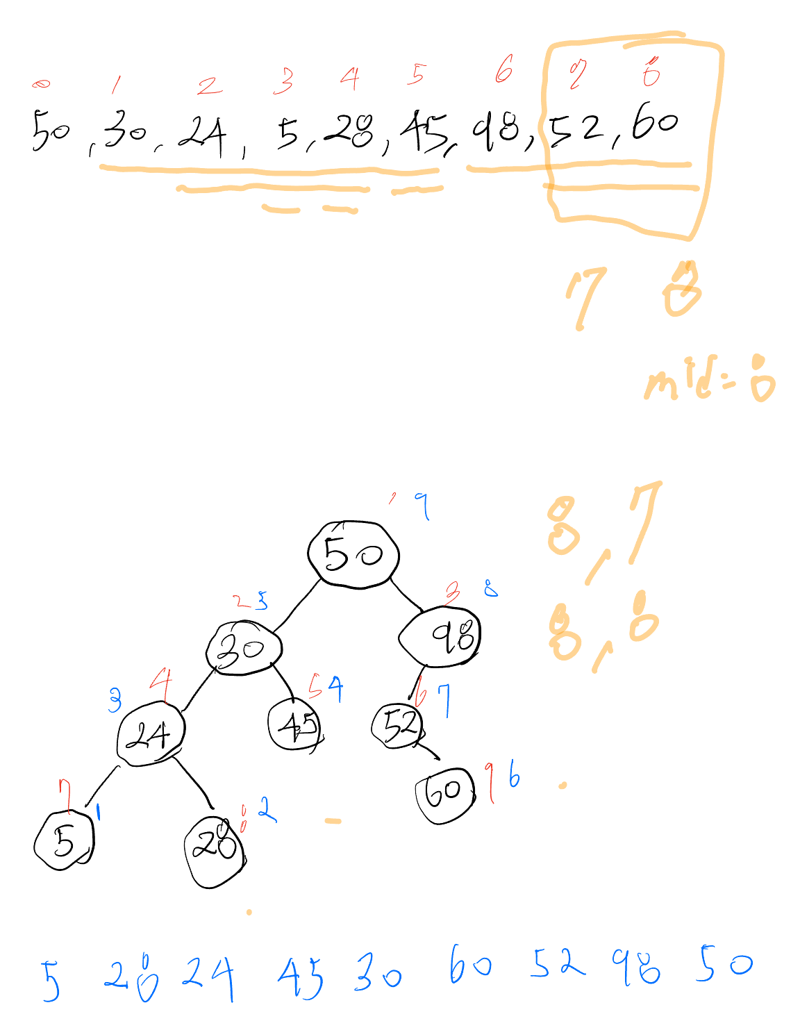 - L과R의 각각 sub-bst로 나뉨을 알 수 있었다. 이 과정에서 그 나누어 지는 포인트를 찾는 방법은 현재 root노드의 값보다 큰 값이 나오는 인덱스지점이 R sub트리가 나누어지는 지점이다.