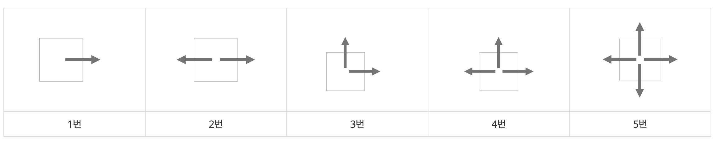 - 다만 2번 CCTV는 현재 위치와 90도 위치로 총 두번만 돌려보면 해당 CCTV로 탐색되는 모든 경우의 수를 구할 수 있다.