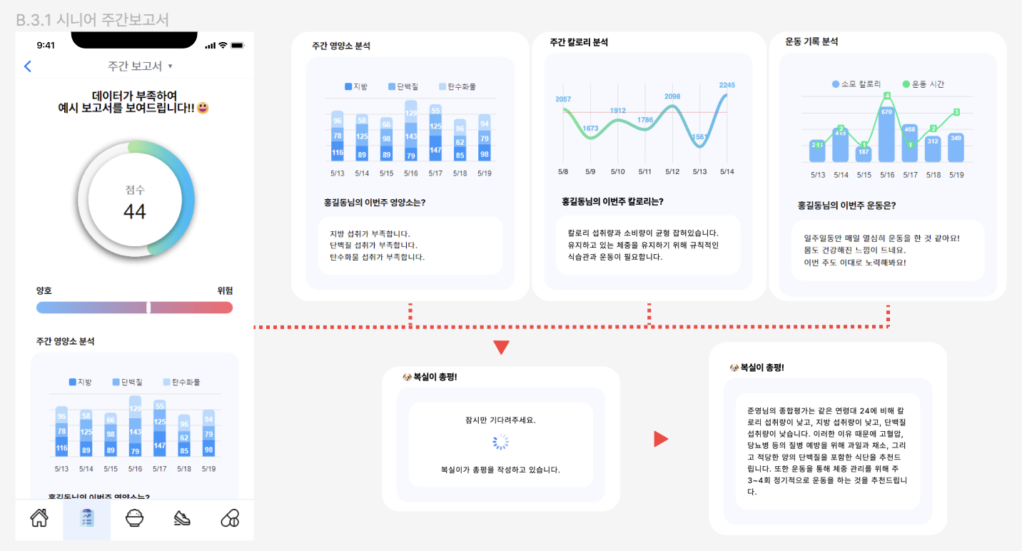 - 나의 건강에 대한 분석리포트를 쉽게 제공하여, 복지사에게 좋은 가이드가 되고싶다.