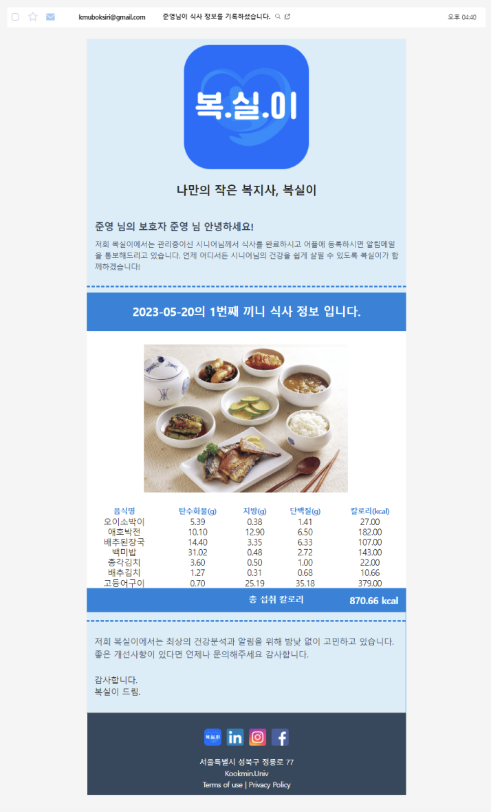 그리고 자잘하게 등록되면 메일을 통해 알림을 보낸는 것으로 유저 편의 기능도 제공한다는 점을 강조했다. 사실 카카오톡을 통해서 유저에게 알림을 주고 싶었지만, 사업자 등록이 필요하고, 과금이 생긴다는 것을 알았고 그것에 대한 대체 수단으로 아래와 같이 메일을 통해서 알림을 보내도록 했다. 타임리프로 이쁘게 템플릿 만들고 안에다가 데이터 파싱하는데 꽤 많은 시간을 썼다는 것은 비밀이다. 그래도 나름 실제 서비스에서 보내지는 템플릿 메일의 완성도가 나왔다!