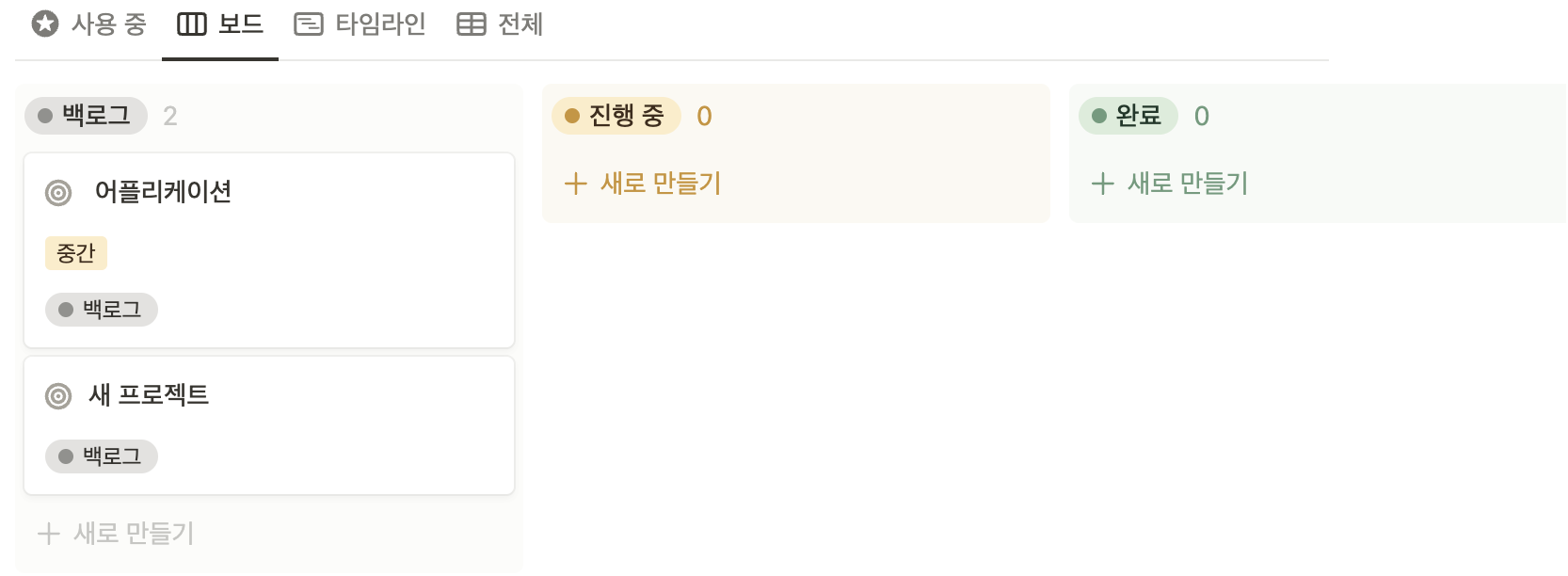 노션의 멋진 UI를 이용해서 내가 하는 일들을 계속해서 드래그 해놓는다면 이처럼 이상적인것은 없을 것이다. 실제로 초기에는 이렇게 해보자 했지만 막상 개발을 진행하니 여기서 드래그앤드롭하는 것도 너무 귀찮았다. 그러다보니 최신화가 됐는지 알수도 없고 결국 의미 없는 타임보드가 됐다. 조금 개발자스럽게 이것을 한번에 처리하면 좋을 방법이 없을까 고민했다.