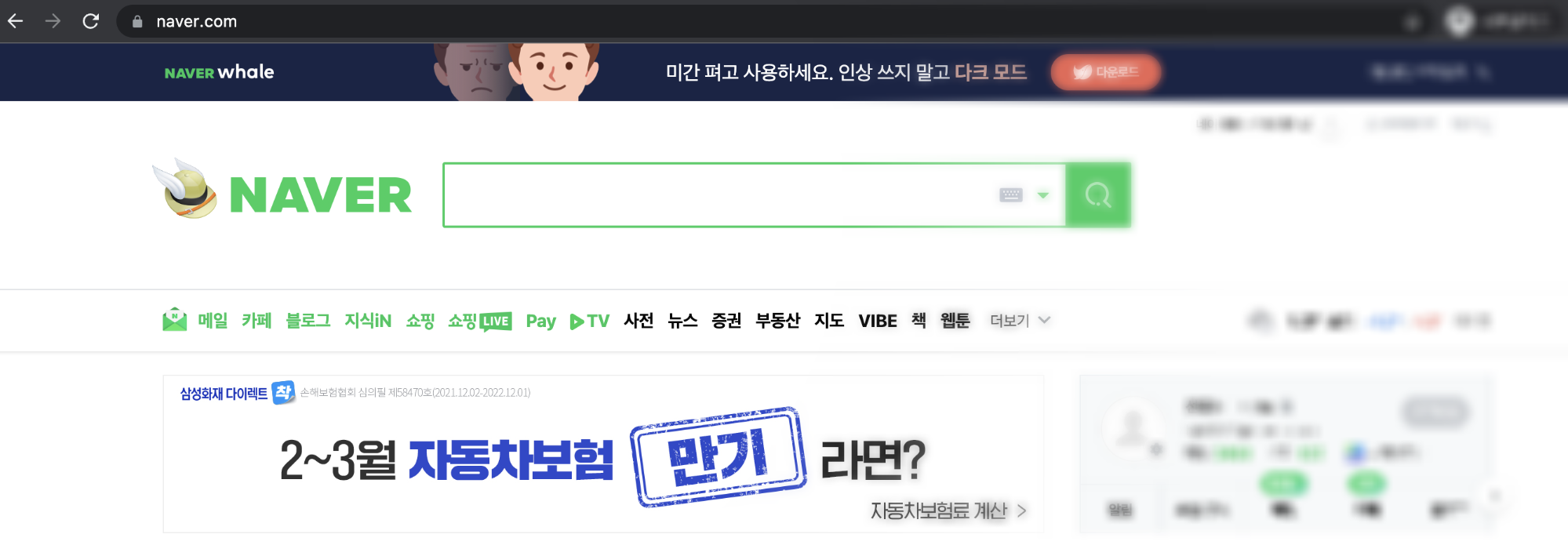 네이버가 어떤 로그인방식을 사용하는지는 모르겠지만, 네이버에 로그인 후 쿠키를 지울경우 로그아웃 상태가 된다.