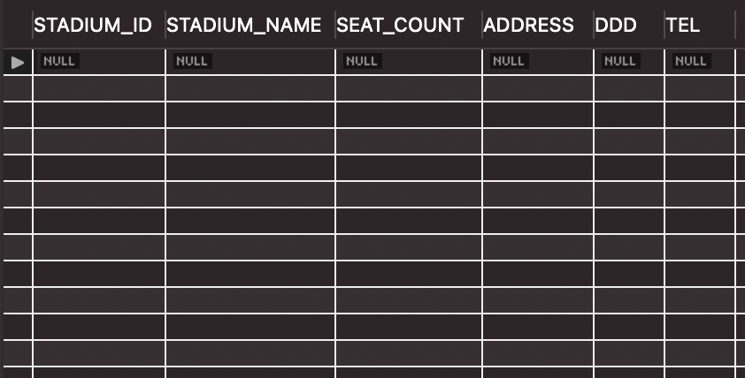 PLAYER 테이블은 비어있는 상태로 위 명령어 실행 결과