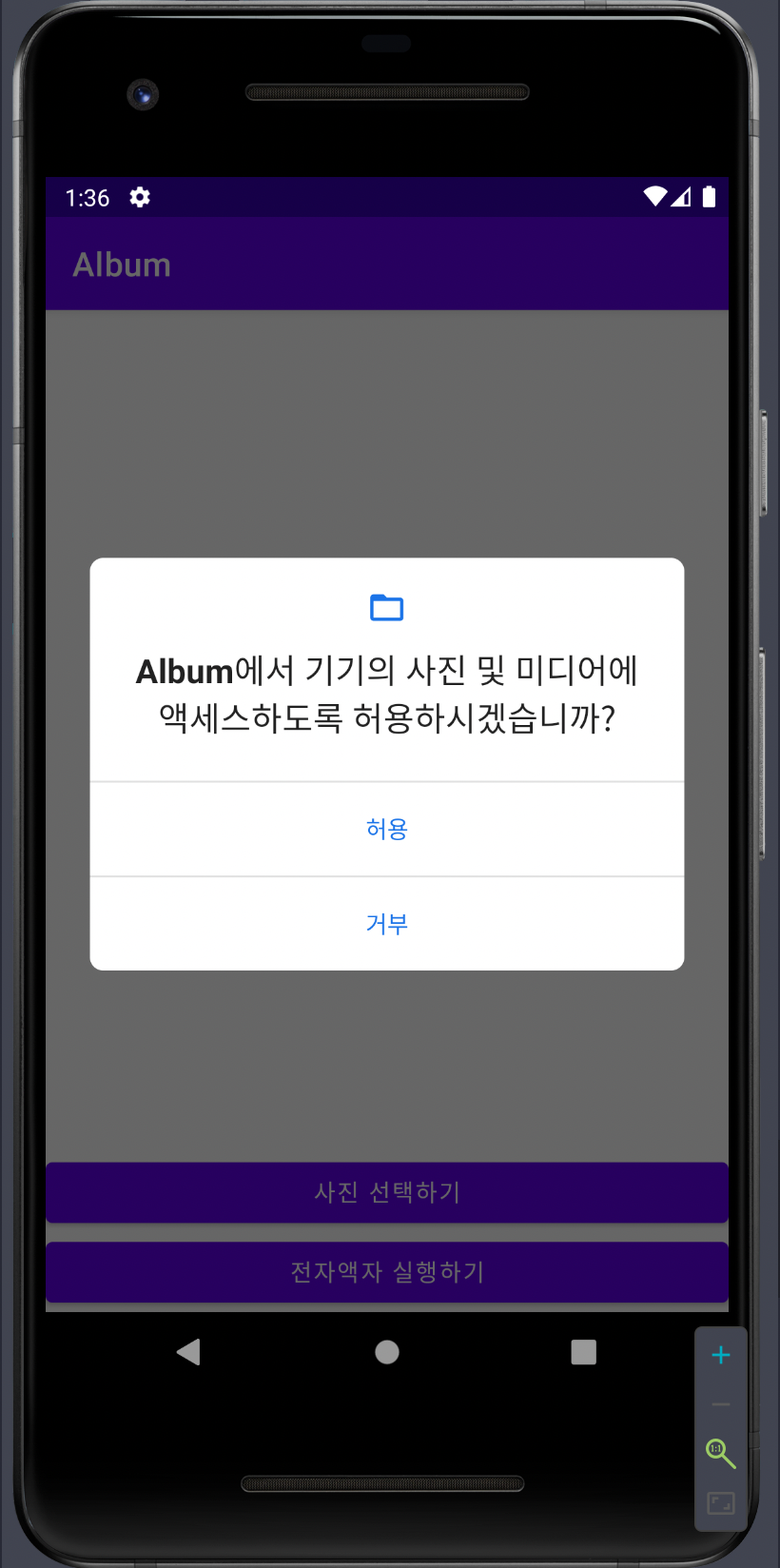 - 사진앨범에 접근하기전 권한 여부를 확인 후 권한을 얻음