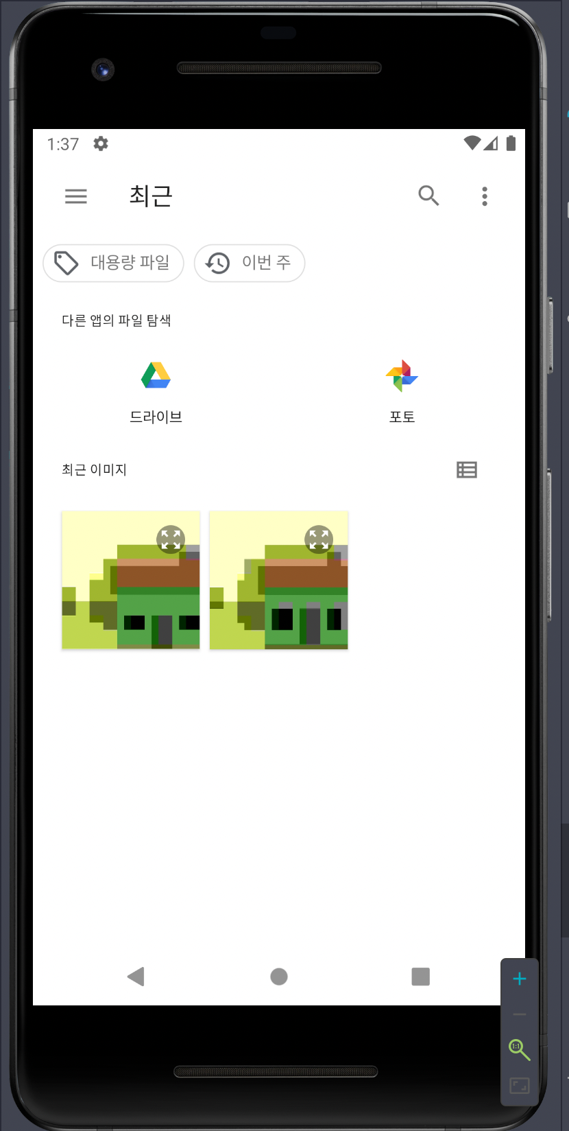 AVD에서는 사진을 찍으면 괴상한 캐릭터가 나온다. 실제 스마트폰으로 에뮬레이터를 사용하면 꽤 빠르고 좋다고하는데, 얼른 써보고 싶다.