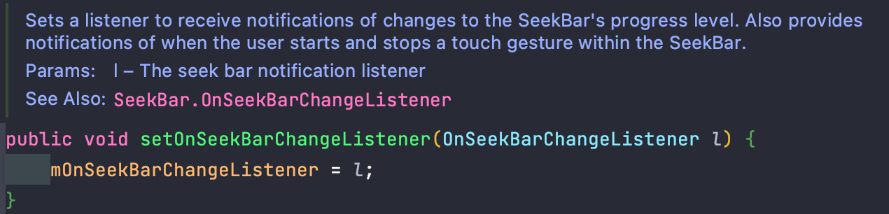 해당 함수는 위 설명과 함께 OnSeekBarChangeListener을 인자로 가지고 있다.