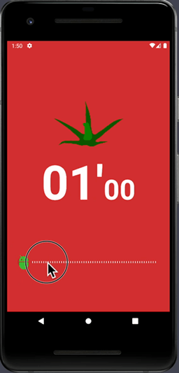 seekBar를 드래그하여 원하는 시간을 설정하는 타이머이다. 타이머는 해당 시간부터 00분00초가 될때까지 진행된다. 타이머가 끝나면 벨소리가 울린다. 시간이 가는 중에는 째깍소리가 난다. 홈키를 눌렀을때 즉 앱이 백그라운드로 전환 됐을때는 소리가 멈춘다.