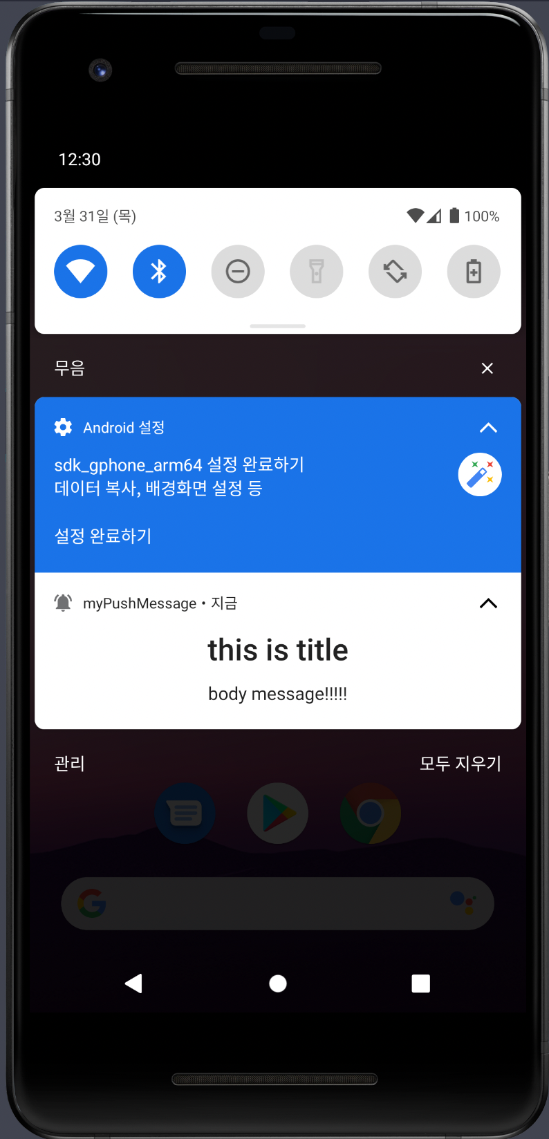 이제 파이어 베이스와 연동은 끝냈다. 알림을 위한 코드를 작성하자