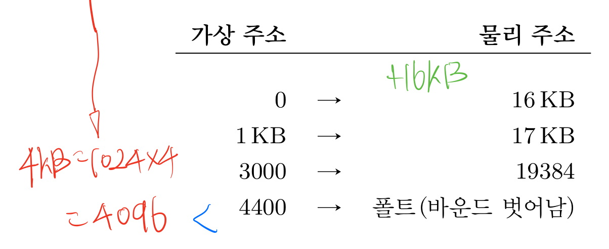 전자의 방식으로 바운드를 구현한다고 했을때 아래 4KB의 가상주소를 가지는 프로그램을 생각해보자.