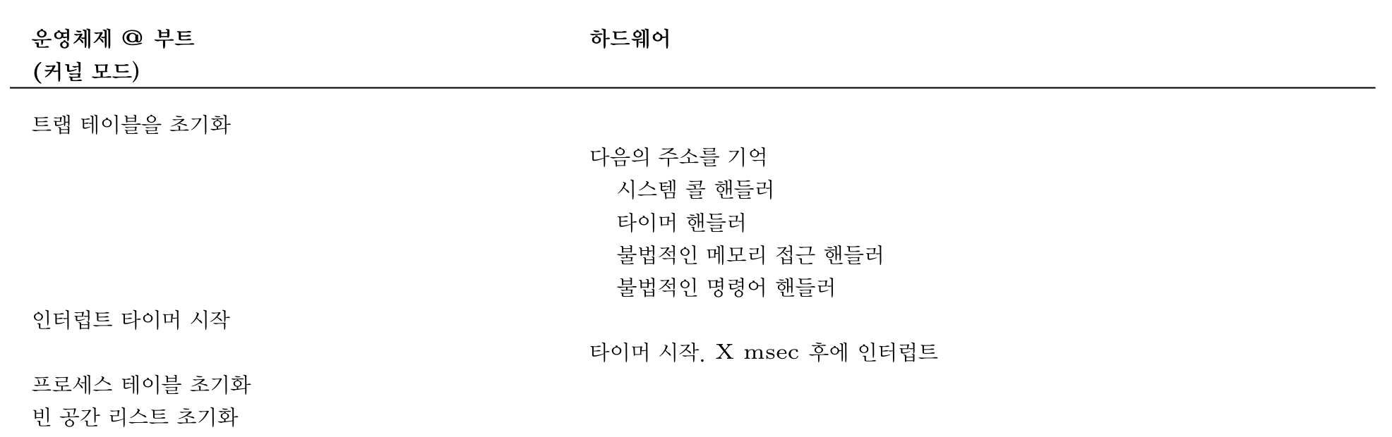 예외 핸들러에서의 조치를 정의해야 한다. 예를 들어 bound를 벗어나는 메모리 접근이 동작하면 예외 핸들러를 호출하고, 이 호출에 대한 동작을 정의해야 한다.