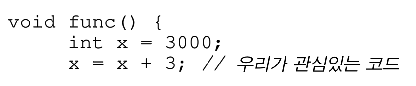 x = x + 3은 아래와같은 주소 접근이 일어나면서 실행된다. 시스템 소프트웨어때 공부했던 그대로다.