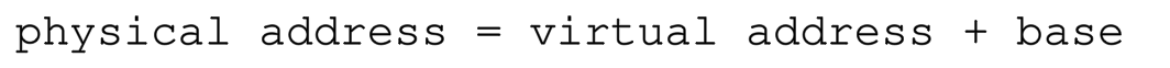 1950년대 초창기 시분할 컴퓨터는 베이스-바운드기법(base - bound) 을 활용했다. 이 기술을 동적 재배치(dynamic relocation)이라고 한다. 각 CPU에는 두개의 추가적인 레지스터(하드웨어)가 필요하다. 하나는 베이스(base) 또 하나는 바운드(bound)라 부른다.