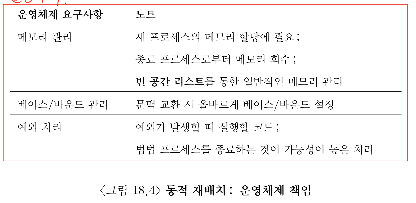 동적 재배치라는 새로운 기능으로 하드웨어에 추가적인 요구사항이 생겼듯 운영체제에도 새로운 요구사항이 생겨난다. 크게 몇 가지로 나눌 수 있다.