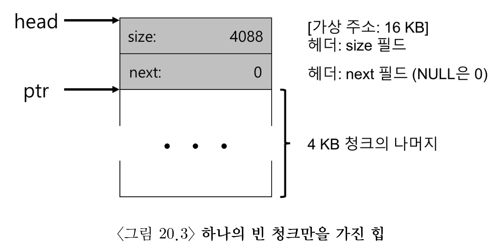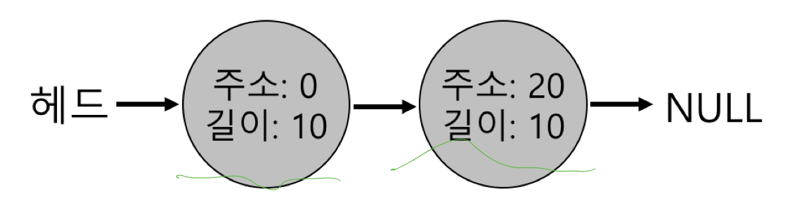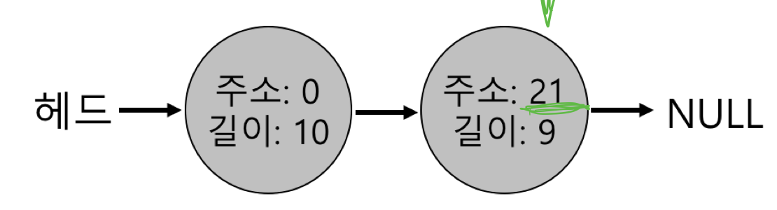 빈 공간리스트(free list)는 아래와 같이 리스트를 관리하고 있다.