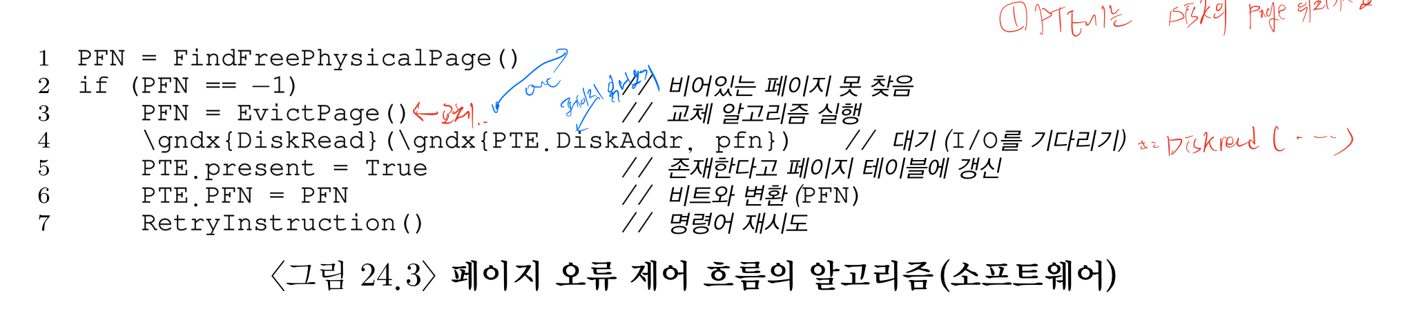 만약 페이지 폴트(PAGE_FAULT) 예외처리가 발생하면, 디스크에서 페이지를 스왑해야 한다.