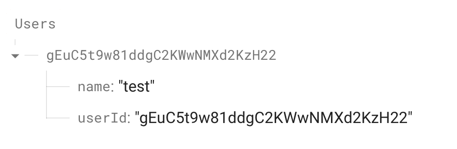 맥락상 회원가입 성공시에 다뤄도 될 거 같다. 일단 파이어베이스의 auth를 통해 회원가입이 완료되면 그 계정에 대해서 고유 uid값을 얻게 되는데, 이 uid값을 이용해 DB를 다룬다.