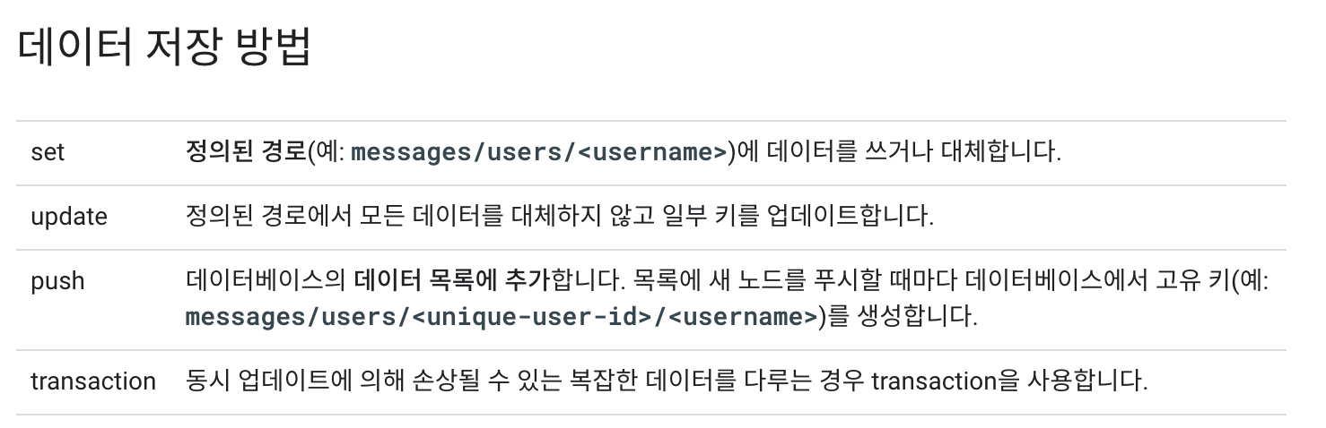 리얼타임 데이터베이스 구조는 child로 한단계씩 내려가서 정보를 저장할 수 있다.