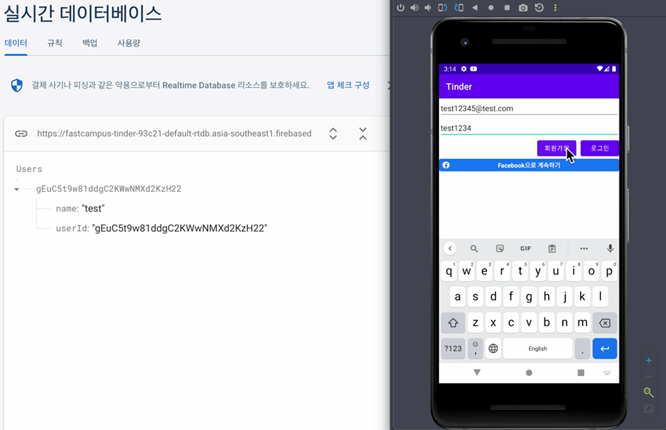 [안드로이드&코틀린] 틴더앱 만들기#1, 파이어베이스 Authentication이용하여 로그인 회원가입 기능 최종 결과물이 아닌 본 게시글에서 공부했던 것의 결과물임. # 결과물 미리보기 아마 안드로이드