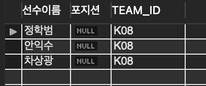 포지션이 없는 선수를 찾고 싶을때는 POSITION = NULL 이 아니라 POSITION IS NULL 로 조건을 줘야한다.